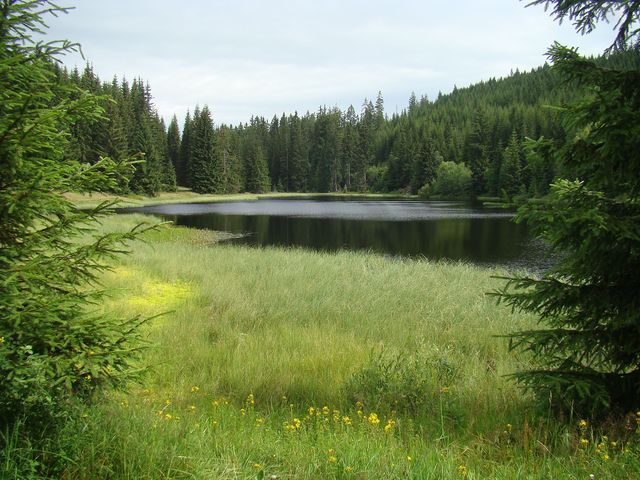 Pátek 20. července byl posledním dnem pro objevitelské toulky Šumavou, a tak jsme neváhali a okamžitě po snídani vyfuněli na Knížecí Pláně a odtud zamířili na Žďárecké jezírko vybrat si odměnu za všechna stoupání.