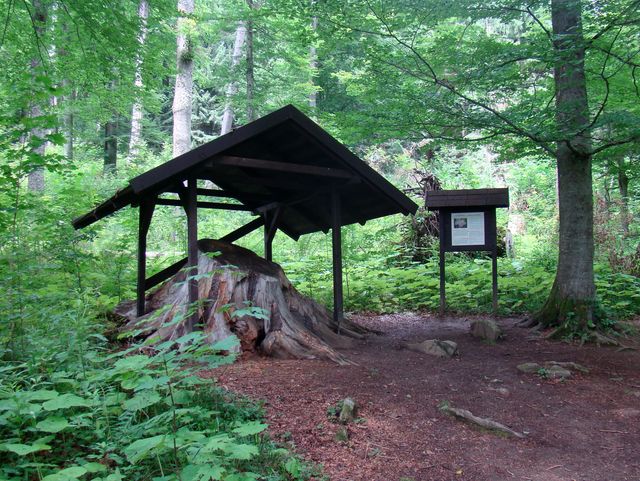 Je třeba, abych se zmínila o tom, že všechny značené stezky na Šumavě jsou doplněné informacemi odbornými i všeobecnými – sice čtení těch tabulí trochu zdržuje, ale vnímavý člověk využije ty poznatky hned na místě ve svůj prospěch. Třeba u tohoto pařezu jsme se dozvěděli, jak se dopočítat toho, že strom byl v době pokácení 188 let starý.