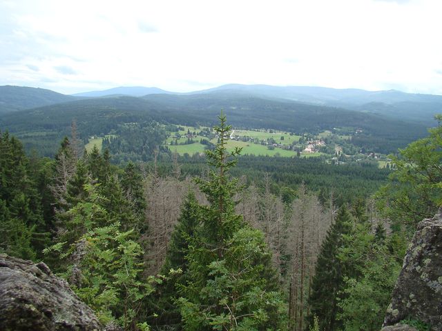Téměř pralesním porostem jsme vystoupali na Stožeckou skálu a kochali se.