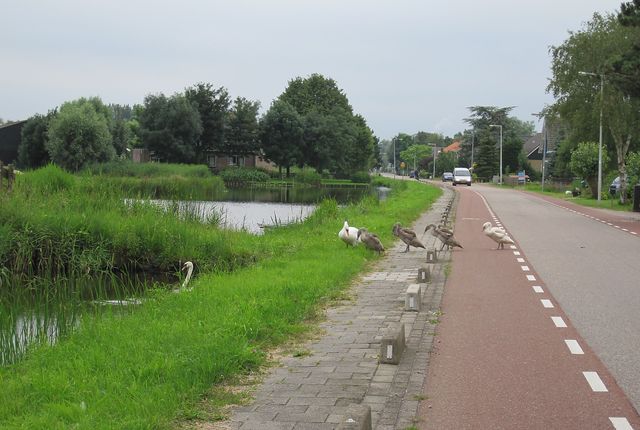 Několikrát jsme sledovali labutě, které považují silnici v Purmerlandu za svůj dvorek – sedávají totiž na druhé straně vozovky než je jejich rodný gracht.