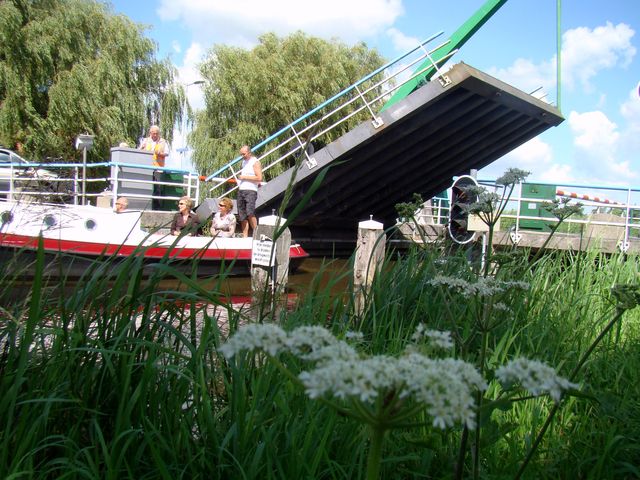 Ještě přidám různé typy zvedacích mostů: chce-li proplout pod tím následujícím, musí si kapitán zavolat na telefonní číslo uvedené na pilíři a za malou chviličku přijede usměvavý dlouhán na bicyklu, odemkne zámek na zarážce a most se může zvednout.