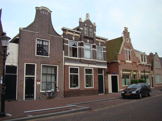 Domy ve městech se stavěly úzké a hluboké – daně totiž byly vyměřovány podle šířky průčelí. Budovy se rozlišovaly podle domovních znamení, číslování v Holandsku zavedli až v 19. století.