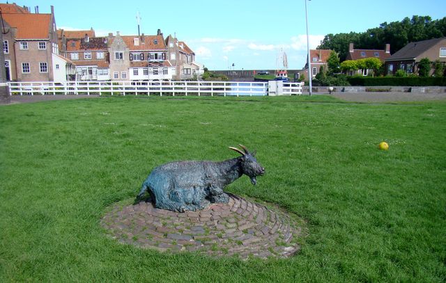 Mladý Potter právě maluje kozu, která leží pár metrů před ním. Kvůli protislunku se nepodařilo zachytit oba objekty na jednom snímku, tak bronzová holandská koza má svůj vlastní obrázek. 🙂