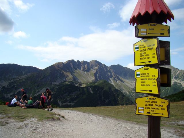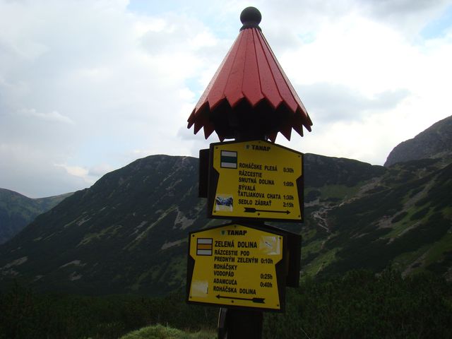 Hluboké nad Váhem je ve výšce asi 330 m n. m., v sedle Pod Roháčem je na nerezové tabulce (!) turistického rozcestníku uveden údaj 760 m n. m., tedy jsme si tělo po několikahodinovém sezení v autobuse protáhli překonáním více jak čtyř set výškových metrů.