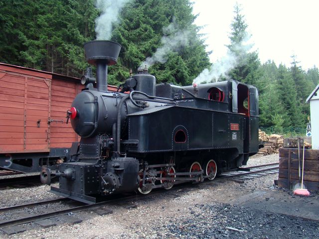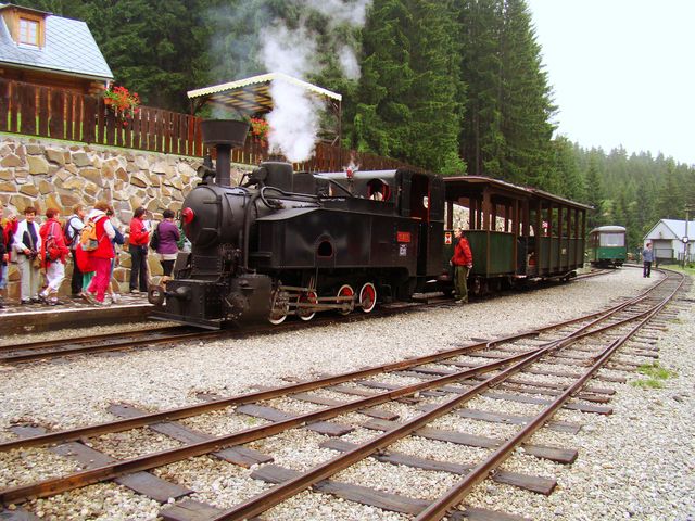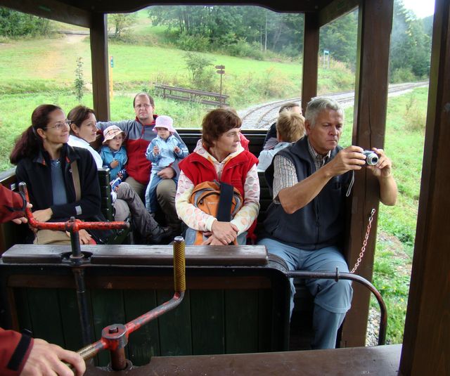 V hotelu obklopeném lesy bylo všechno fajn, přesto jsme v neděli 26. srpna 2012 při odjezdu příliš nesmutnili – únava se začala hlásit a také počasí nám to usnadnilo – drobný déšť přinesl velké ochlazení a vítr, následně lezavou mlhu. Ale štěstí přeje připraveným – vedoucí zájezdu Jaroslav Pachr měl i v tomto případě co nabídnout – projížďku ve vláčku taženém úzkorozchodnou parní lokomotivou Gontkulák po lesní železnici Vychylovka.