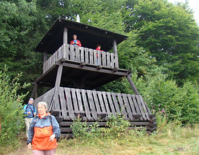Po dvaceti minutách jsme přijeli do výhybny v sedle a dle doporučení zašli k dřevěné rozhledničce, ze které pro mlhu nebylo vidět do kraje. 🙁