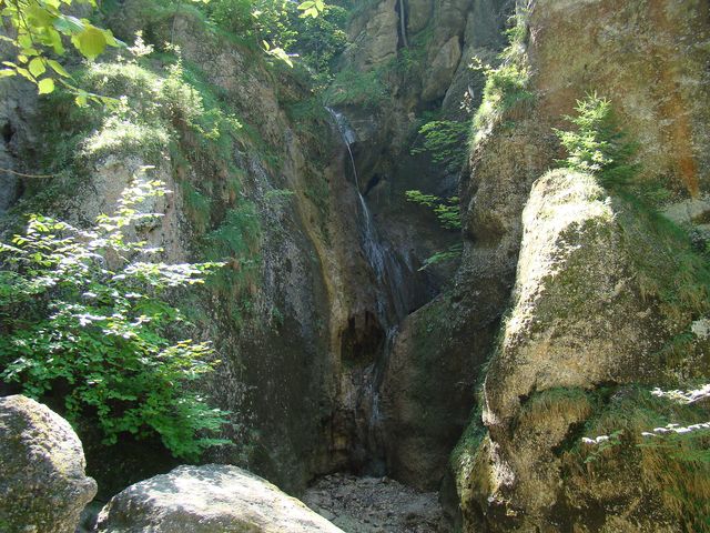 Stoupali jsme lesem a pak uviděli Hlubocký vodopád – malátný, až spící…