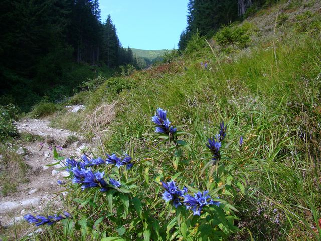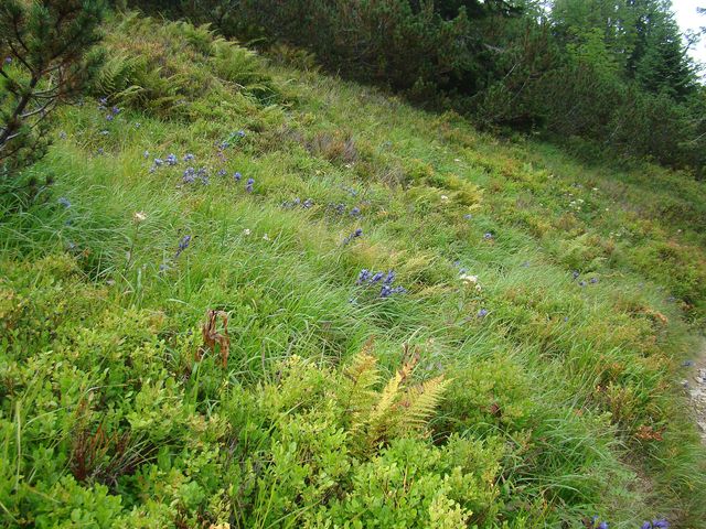Z mapky vyplývá, že jsme nešli na Pacholu (2167 m), ale kvůli úspoře času (přiznávám však, že hlavně kvůli mé zlobivé, nespolehlivé noze) jsme odbočili z hřebenu vlevo dolů po svahu a neoficiální cestou si za cenu značných útrap zkrátili cestu a napojili se kousek pod Baníkovským sedlem na žlutě (a zeleně) značenou stezku. Nevím, zda jsme udělali dobře, rozhodně to ale byla cesta, na niž se nezapomíná!