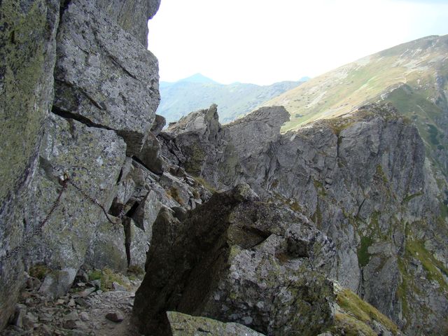 Na následujícím obrázku je asi nejtežší úsek (pro mě), naštěstí zajištěný řetězy.