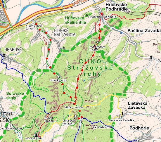 Trasa: Hľboké nad Váhom ZTZ – Hľbocká dolina – Hľbocký vodopád – Roháčské sedlo – zpět pod Roháč ČTZ – hrad Hričov – Hričovské Podhradie = asi 4 hodiny cesty