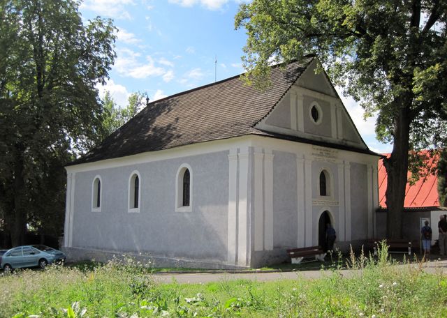 Nedaleký toleranční kostel byl další zastávkou – díky průvodkyni jsme se podrobně dozvěděli historii tohoto, kdysi pro místní obyvatele velmi důležitého duchovního stánku, později zanedbávaného objektu, dnes konečně důstojně upravené budovy.