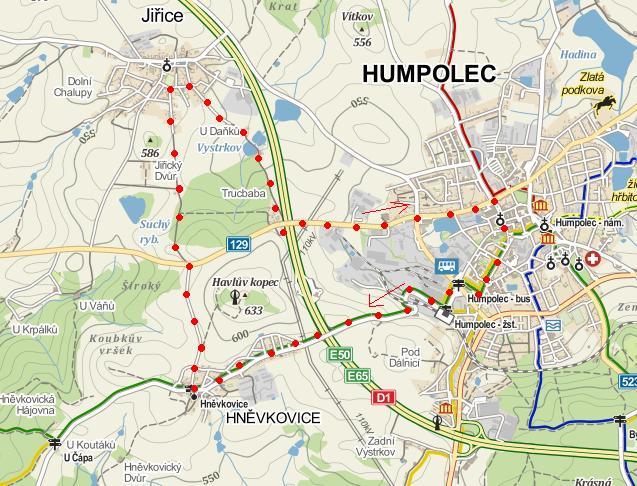 Trasa: Humpolec – Hněvkovice – Jiřice – Trucbába – Humpolec = 10 km