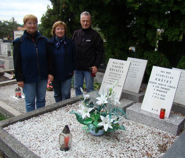 Nakonec jsem si dodala odvahy, a tak jsme stáli u hrobu mikulovských kanovníků, kam byl pan biskup před dvěma lety uložen. Není mi dáno, a také je to příliš niterná záležitost, vystihnout stav mysli, ale krátce řečeno – pocítila jsem důvěru v pomoc a tím získala klid. Jisté je, že na milost té chvíle vzpomínám.