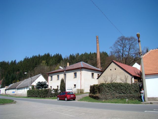 Vrátili jsme se do městečka, upozornili účastníky výletu na to, že v bývalém lihovaru, z něhož už je zachován jen komín,
