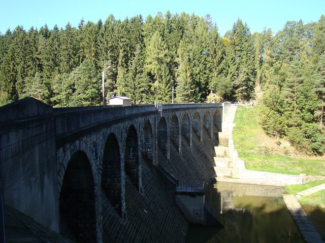 V létě 2007 jsme šli po žlutě značené cestě směrem na Brtnou, světlo bylo fotografům příznivější a Mirek udělal obrázky hráze i přehradního jezera.