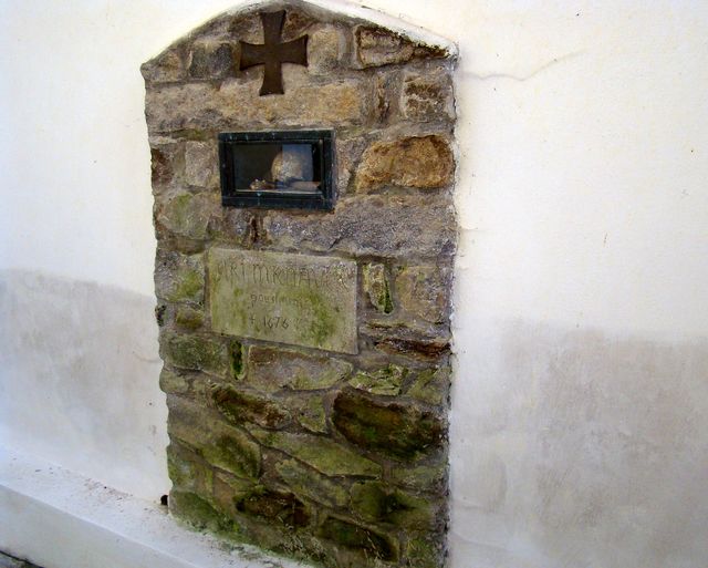 Do Kaple mrtvých byl přemístěn i náhrobek nejznámějšího z křemešnických poustevníků Jiřího Mrňávka, zemřelého 1676, který býval pelhřimovským rychtářem a kvůli svým vinám (prý někoho i zabil) se rozhodl pykat za své činy – strávil zbytek života ve službě Bohu a lidem v poustevně na Křemešníku.