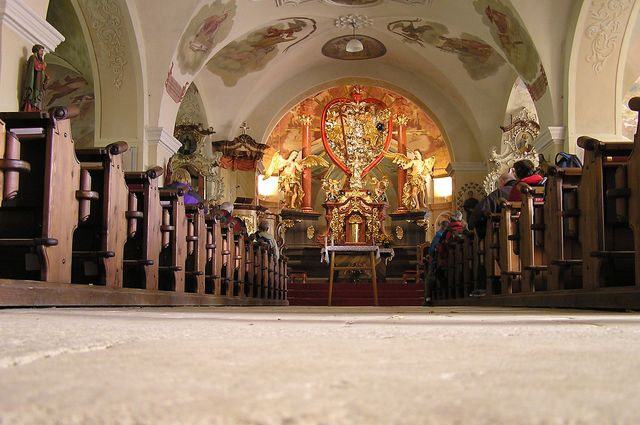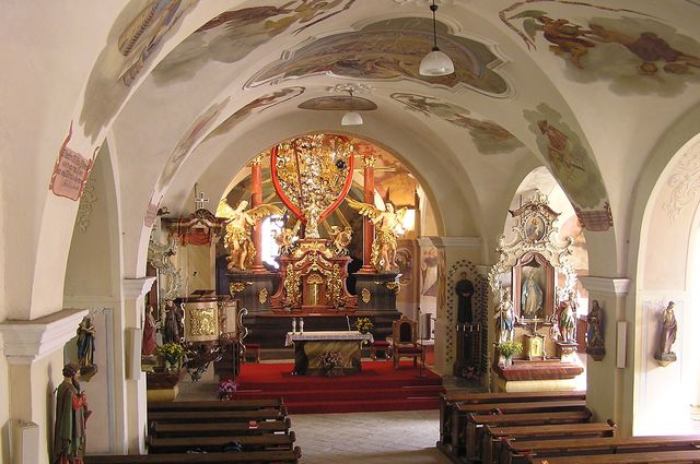 Před několika málo lety byly dokončeny celkové vnitřní opravy, takže je zážitek posedět a kochat se: nástěnné malby jsou z 18. století, varhany mají 600 píšťal…
