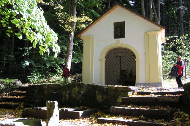 Poustevníci přebývali v jeskyni kousek od kaple a pečovali o prameny…