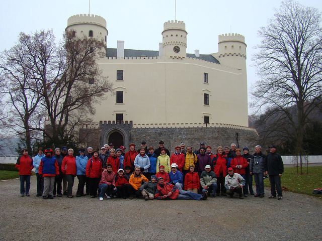 Další zastávka na cestě k Plzni byl Orlík, krásně současným majitelem opravený a přímo vyzývající ke skupinovému fotu účastníků. 🙂