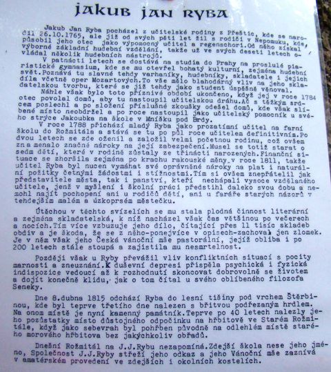 Podrobnější povídání o J. J. Rybovi najdete ve článcích Brdy a Svatojakubská cesta, dnes zařadím jen informace, které jsou příchozím k dispozici u mohyly.
