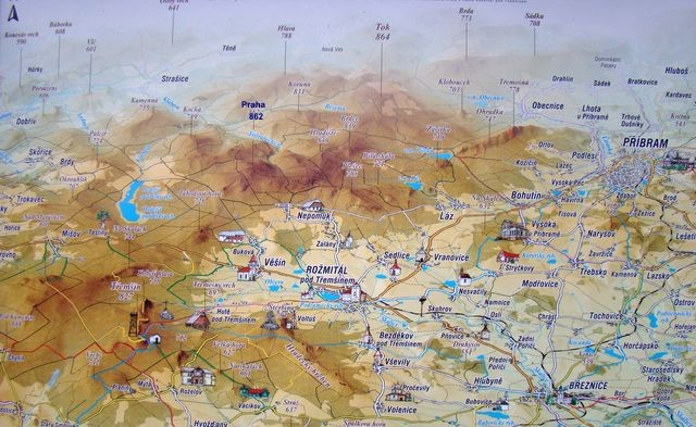 Z úbočí kopce nad Voltuší je za jasných dní krásný pohled na brdské vrchy, dnes pro připomenutí jen mapka oblasti.