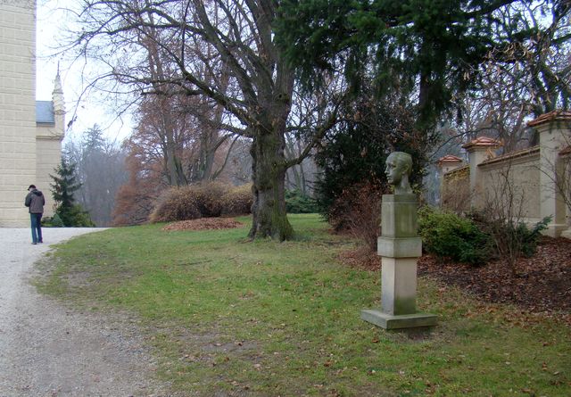 Prý ten studený pokoj příliš nemiloval, přesto jsem na zařízení, prý autentické, nábožně koukala. Už v roce 1999 otevřeli Lažanští stálou expozici o Karlu Čapkovi – přála bych si mít na ni více času – zařadím obrázek, na kterém jsou při návštěvě v Chyších s Olgou Scheinpflugovou, manželkou Karla Čapka, mladý Tomáš Halík s otcem Miroslavem, znalcem Čapkova díla.