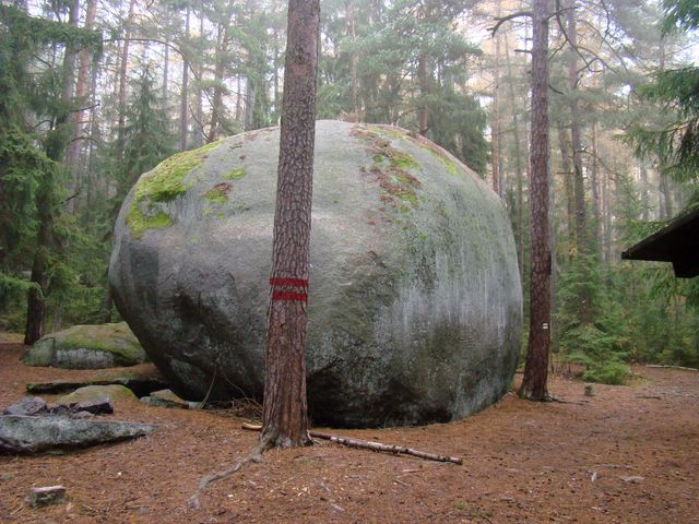Asi kilometr od skalního městečka leží monolitní balvan viklanovitého typu, 6 metrů vysoký a asi 12 metrů široký, nazvaný Bába