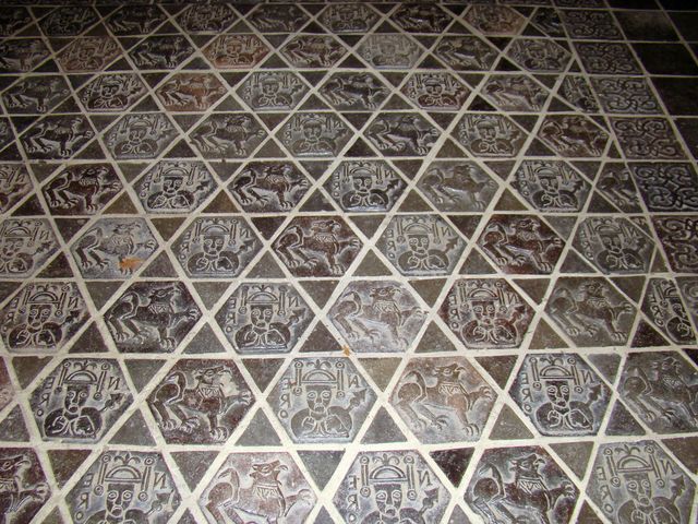 Na dlaždicích je vyobrazen Nero jako antikrist, a šelma, symbolizující pohanská božstva – po nich měli křesťané šlapat.