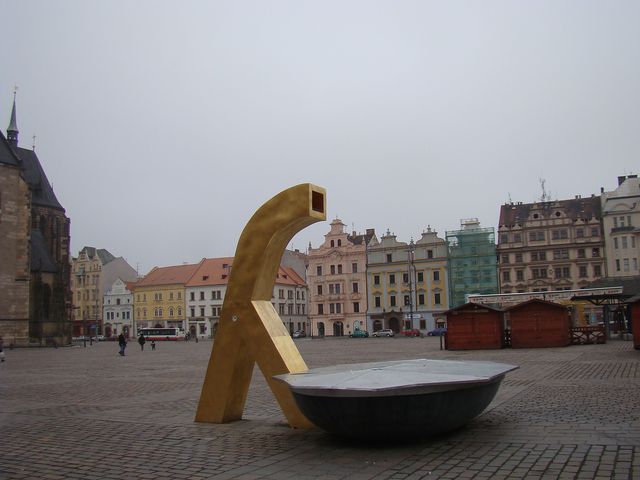 Ušlechtilý rytíř Žumbera je jedním ze symbolů Plzně, vládne prý podzemním vodám. Dalšími symboly ve znaku města jsou Velbloud a Chrtice, štítonošem znaku je Anděl s mírně rozepjatými křídly. Píšu to proto, že tyto názvy dostaly kašny instalované do tří rohů na náměstí Republiky v červenci 2010. Vzhled kašen vzbudil velké emoce, a tak jsem je toužila vidět na vlastní oči. Kvůli roční době chrliče nechrlily, a kašny, na které prý se spotřebovalo 720 gramů plátkového zlata, tajemně mlčely a vysílaly pozitivní energii.