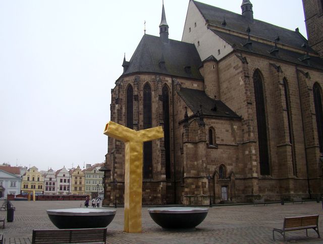 Něco z historie Plzně jsme se už dozvěděli ve Starém Plzenci, tady jen připomenu, že město leží na soutoku Mže, Radbuzy, Úhlavy a Úslavy, jejichž vody odesílá dále do české kotliny pod názvem Berounka. Dnes rušné město se 170 tisíci obyvateli bylo založeno na konci 13. století zároveň s katedrálou sv. Bartoloměje, jejíž 102 metrů vysoká věž nemá v českých zemích konkurenci.