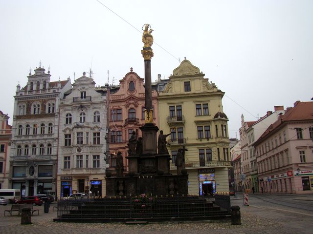 V roce 1681 postavili měšťané v rohu náměstí poblíž katedrály sv. Bartoloměje mariánský sloup jako poděkování za skončení moru. Na vrcholku sloupu je Madona plzeňská, na podstavci sochy sv. Václava, Bartoloměje, Rocha, Floriána a Rosálie, později byly přidány sochy dalších světců.