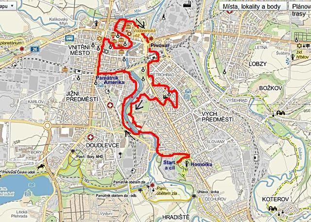 Pokusila jsem se zakreslit trasu Plzní: