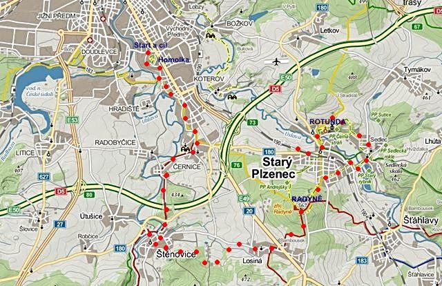 Pro názornost zařazuji mapku dnešní trasy: