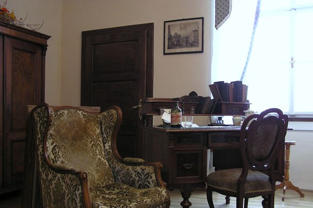 Prohlídka dospěla k pokoji, kde bydlel Karel Čapek: