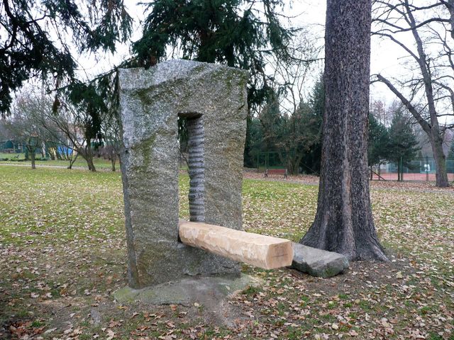 a spatříme kamenné objekty vzniklé při tzv. Žulových symposiích pořádaných v Milevsku, umístěné sem v devadesátých letech minulého století.