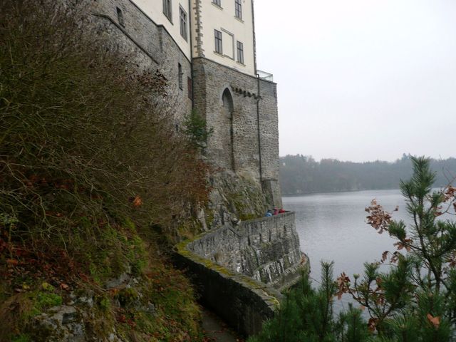 Hrad založený v polovině 13. století stával vysoko na skále nad Vltavou, nyní je jen o pár metrů výše než hladina vodní nádrže Orlík, vybudovaná na řece v roce 1961