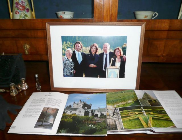 Uprostřed na následující fotografii z roku 2011 je Angelika Lažanská, která žije v severním Skotsku na hradě Cawdor, s manželi Lažanskými z české větve rodu.