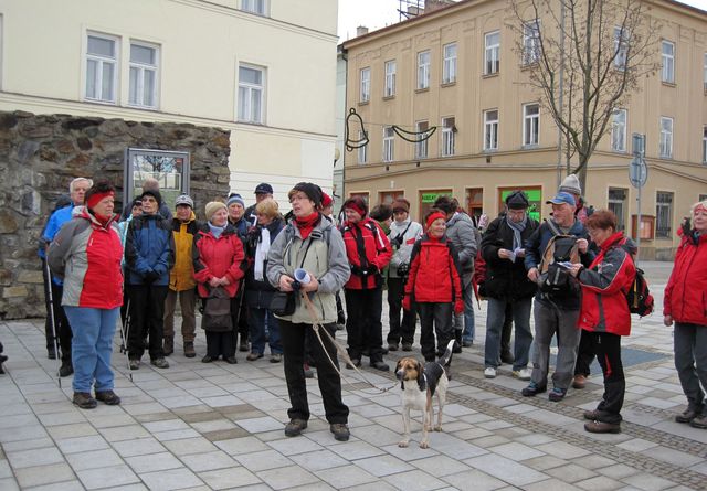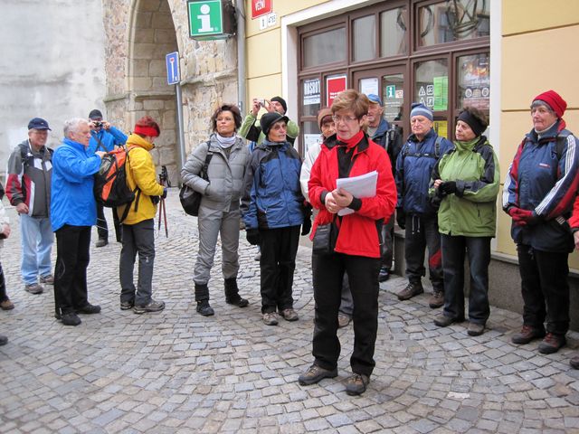 Sešli jsme se v 11 hodin před infocentrem u Brány Matky Boží, Iva nás přivítala a sdělila, že tato je první z osmi akcí nazvaných Vystup na svůj vrchol, které se budou pořádat na Vysočině (i po celé ČR) v následující sezóně.