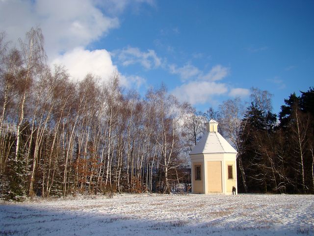 Nedaleko kaple, kousek od cesty, je na okraji bývalé přírodní střelnice, kterou majitelé telčského panství využívali po staletí k aktivnímu odpočinku, vzácná kamenná stéla s otvory k upevňování střeleckých terčů.