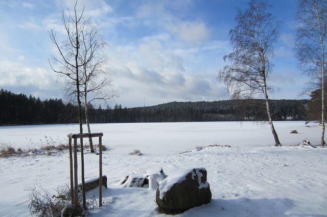 Není to tak dlouho, co jsme si u Velkého Pařezitého rybníka užili podzimní barevné hrátky, nyní byla okolní krajina ponořena do spánku.