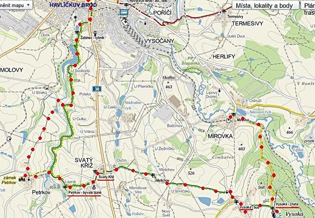 Trasa: Havlíčkův Brod – Petrkov – Svatý Kříž – Vysoká – Mírovka = 15 km