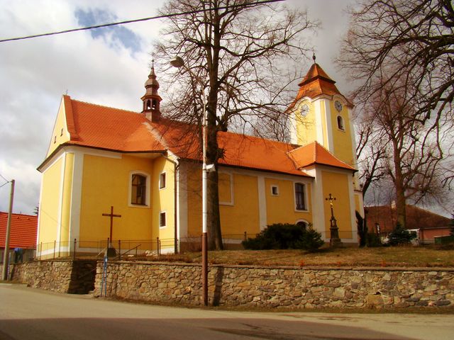 Cesta krásně ubíhala, považovali jsme si slunečného počasí, jen vítr mohl být menší a teplejší. První opravdu významná zastávka byla v Rokytnici nad Rokytnou, která je už v roce 1190 zmiňována v zakládací listině kláštera Louka u Znojma, pár let nato byl zde postaven kostel. Současný je zasvěcen sv. Janu Křtiteli a opravuje se. Nelze přehlédnout sochořadí u schodů ke kostelu – osm soch pochází z poloviny 18. století.