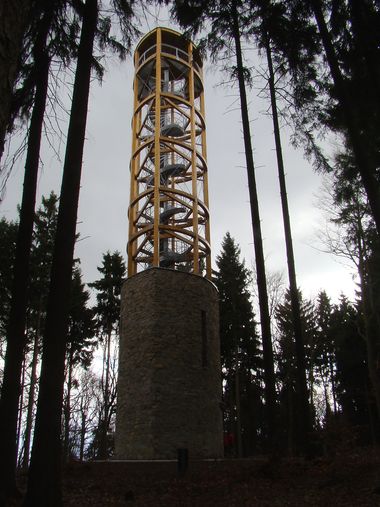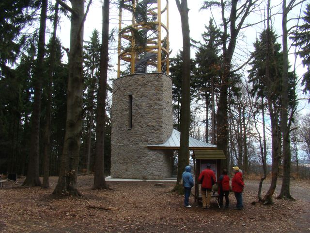 Se stoupající nadmořskou výškou se měnilo počasí k horšímu, zatáhlo se a když už jsme měli rozhlednu před sebou, dokonce spadlo asi deset kapek.