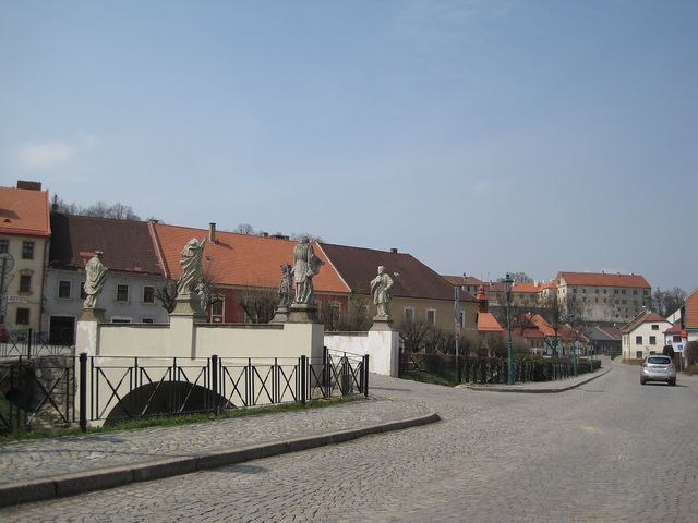 Za opačnou stranou mostu, postaveného na začátku 18. století, bývala židovská čtvrť, původně tato strana symbolicky oddělovala dva světy a nezdobily ji sochy křesťanských světců, byly osazeny až po opravách a rozšiřování mostu ve 20. století. Židé žili v Brtnici už od 15. století, přišli prý po vypovězení z Jihlavy.