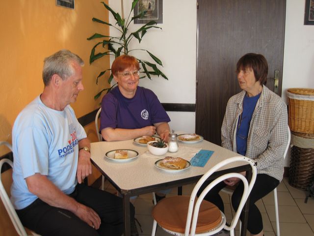 Dnešní putování mělo netradiční začátek – v nedvědické cukrárně jsme s Jarkou oslavili její svátek výborným štrúdlem.