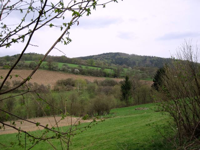 Ze Skorotic jsme se nechali vést modře značenou turistickou trasou nejdříve po úbočí svahu s krásnými výhledy,