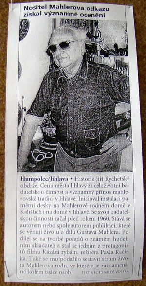 Pan profesor Jiří Rychetský (1926–2012) z Humpolce byl první, kdo začal studovat dokumenty o dětství a mládí Gustava Mahlera, které budoucí hudební skladatel prožil na Vysočině, převážně v Jihlavě. Věnoval se tomuto tématu přes padesát let; jeho zásluhou byly v roce 1960 skladateli odhaleny pamětní desky v Kalištích a v Jihlavě. Inicioval vznik prvního muzea na světě věnovaného Gustavu Mahlerovi, které bylo otevřeno v roce 1986 na Dolním náměstí v Humpolci.