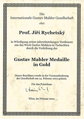 Dne 14. února 2012 rozhodlo předsednictvo Mezinárodní společnosti Gustava Mahlera se sídlem ve Vídni udělit profesoru Jiřímu Rychetskému Zlatou medaili za dlouholetou službu dílu Gustava Mahlera.