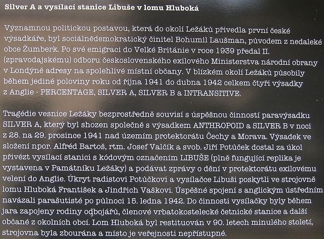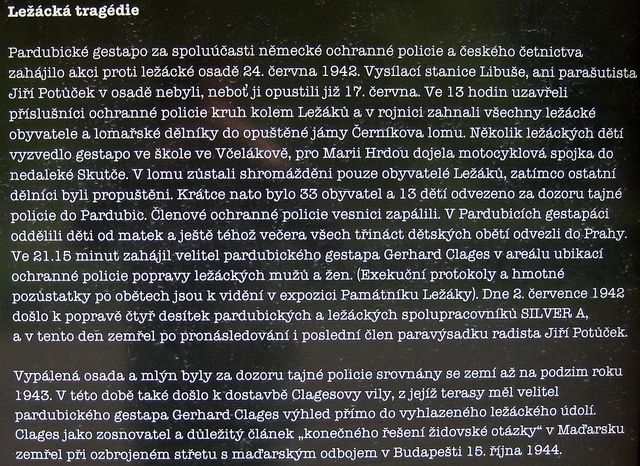 Bývalá kamenická osada Ležáky sloužila za druhé světové války jako úkryt parašutistické skupiny Silver A vyslané z Londýna s radiostanicí Libuše. Po atentátu na zastupujícího říšského protektora Heydricha byla v následném teroru proti civilnímu obyvatelstvu osada Ležáky vypálena a domy srovnány se zemí. Dospělé eskortovali Němci do Pardubic a v Zámečku zastřelili. Z ležáckých dětí se po válce vrátily pouze dvě.