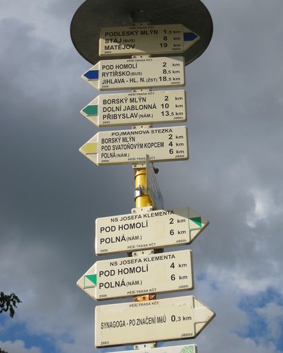 O městě Polné a naučné stezce, která vznikla v roce 2006 k uctění památky tragicky zahynulého předsedy odboru KČT Polná Josefa Klementa, se dočtete ve článku: M+M Svatošovi – Naučné stezky v Polné, další informace jsou ve článcích Z Polné do Řehořova a ZJTS v oblasti KČT Vysočina.